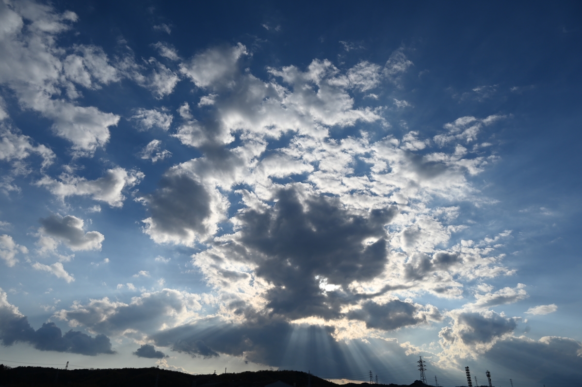 層積雲の隙間雲に光芒 15:32 南西 24mm |