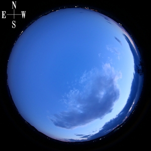 大きく成長したつるし雲 17:35 上が北 全周魚眼レンズ |