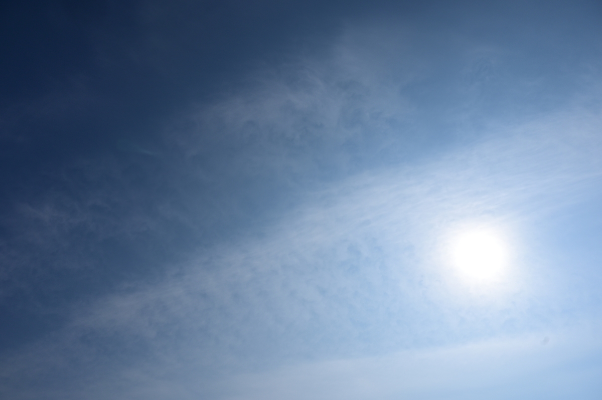 | 台湾付近に生じた低気圧を含む気圧の谷の接近で、巻層雲が卓越 する空でしたが、観察しているかぎりでハロは見られませんでした。 地上付近では春霞のような透明度の低さで、暖かな陽気。夜になって も気温はあまり下がらず、24時で7.2℃となっています。明日は低気圧 が南方を通過するため、今日のように暖かい晴れの天気になりそうで すが、上層雲がかかるので、大気光学現象も楽しめるかもしれません。 |