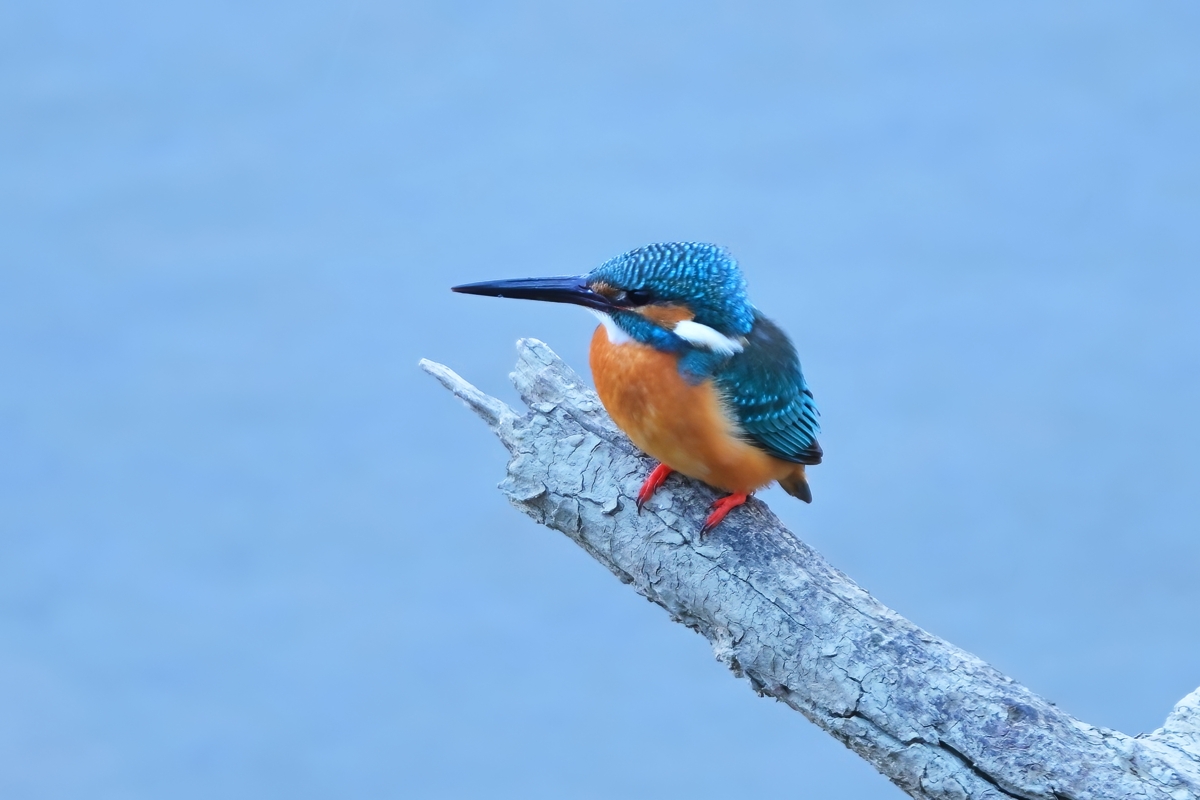 カワセミ 16:46 強風はカワセミの後頭部をはじめ 巻き上がった部分を美しく見せる。 |
