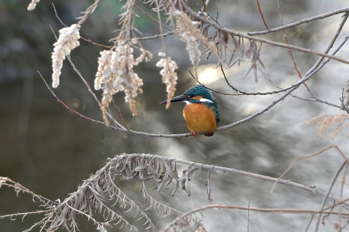 | 替えの強い、夕方の員弁川。 多くの野鳥が潜みがちの中で ホオジロが近くに来ました。 カワセミは2度登場。 夏から同じ個体を見ていると 思うが、かなり綺麗な色に なってきたようです。 |