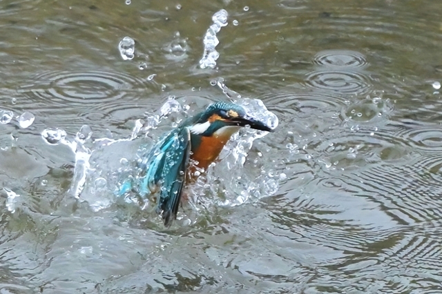 | 昼過ぎの揖斐川。 オカヨシガモ、コガモ、ヒドリガモのつがいを オス・メスが近づいたときに撮影。 飛んできたカワウは婚姻色。 カンムリカイツブリも近くに来ました。 続いて昼過ぎの員弁川。 カワセミが見えない場所に留まって飛び込み。 見える場所に飛び出してきて、ホバリングして からの飛び込みを撮影しました。 |