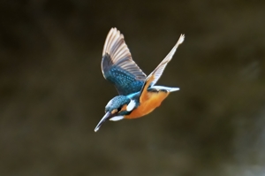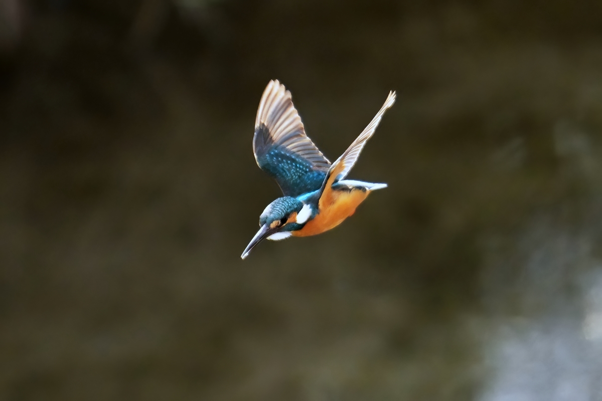 | 晴天、夕方の員弁川。 明るい時間帯にあらわれたカワセミが30m離れた 所の樹木の枝から飛び込み。強い逆光だが、この 光線状態ならではの透けた翼(風切)の美しさです。 堤防の樹木に留まったのはノスリ。 すぐに飛び立つとは思わずに1/500秒で飛翔を撮影。 翼の動きが速い羽ばたきの位相ではブレがあるが、 ブレの少ない位相のカットをセレクトしました。 ほかに見た主な野鳥は、カワアイサ(オス・メス)、 クイナ、カワウ、ケリなど。ケリはいつもは川の 近くの田んぼにいて、水浴びに中州まで 飛んできたものです。 |