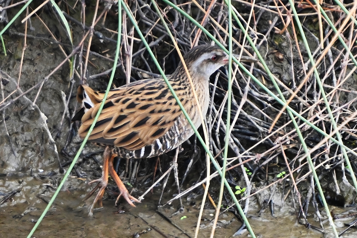 夕方の員弁川。 浅瀬を飛び越える鳥に気づいて目を向けると、 こちら向きに着地し、一瞬で草むらに入りました。 シルエットからはチドリの類か?と思いましたが、 出てくるのを待っていると・・・・。草のトンネルを 抜けて姿が垣間見られたのはなんと クイナ! 見間違いでなければ、クイナの飛ぶところを 初めて見たことになります。あとは飛翔写真・・・。 だいぶあとにイカルチドリがあらわれましたが、 あのシルエットはやはりクイナだったようです。 日没のころ、数羽のカラスとバトルしながら樹木に 留まったのは、ノスリのようです。ここ最近、同じ 場所で見るのと同一個体かと思います。枝かぶり なく、、飛び立つシーンも撮影できました。 |
