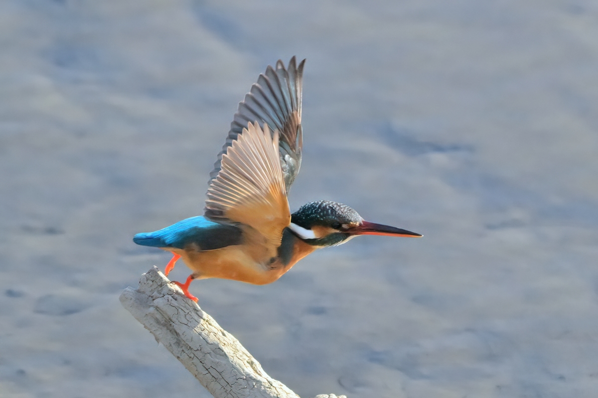 | 夕方の員弁川。 いつもはクイナが歩く浅瀬に登場したのは、久々のヒクイナ。 夏鳥ながら東海地方以西では越冬もけっこうあるとのこと。 (山渓カラー図鑑「日本の野鳥」を参照) 日没頃の草むらの陰で動き回り、難しい撮影でした。 なお、このポイントではあ昨年9月30日にも撮影しています。 時間は前後しますが、明るい時間帯にあらわれたカワセミ(メス)。 これまでずっと見られたオスのカワセミが来なくなって3日目。 オスに入れ替わってメスが登場した格好になります。 メスは下嘴の赤いのが特徴。半逆光でしたがどの角度でも 赤く見えています。このポイントでは、夏以降、オスとメスを 同時に見ることもありましたが、仲良くはありません。繁殖期 以外はオス・メスによらず縄張り争いがあるのかもしれません。 明日以降、オスが来るのかメスなのか、要注目です。 |