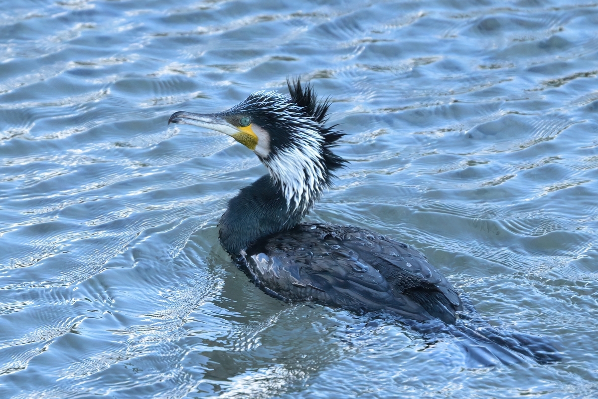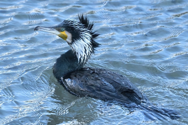 | カワウ(婚姻色) 虹彩はグリーン、エメラルドのよう。 |