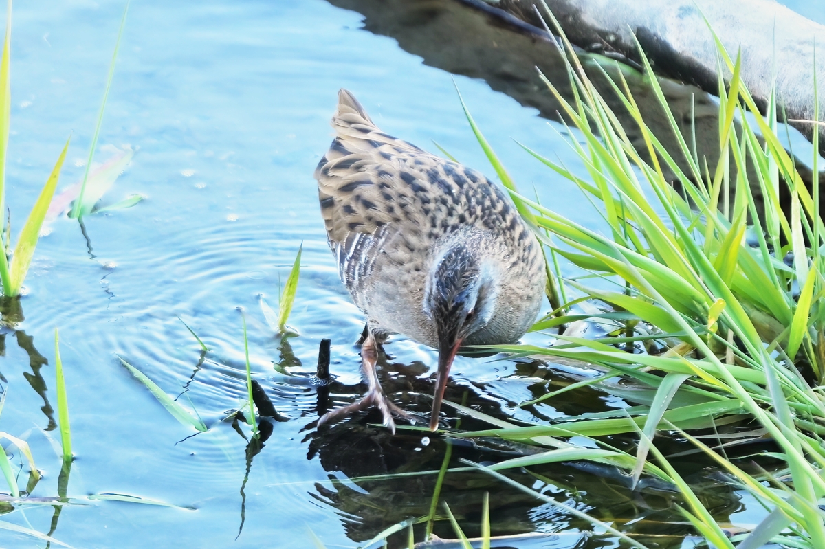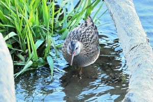 | 夕方の員弁川。 間近に来たカワウは婚姻色で、首の羽毛が白く、 目の虹彩は宝石のエメラルドのようなグリーン。 クイナが何度も見られて、一度はカワセミポイント の倒木付近を歩き回りました。いつもの行動範囲 と異なり、かなり開けた場所で、生活になじんだ クイナの警戒心が薄れているのかもしれません。 カワセミは4回登場。撮影できたカワセミを見ると 下嘴が赤色で、メスのようです。オスも来ていた のかどうか不明ですが、明日以降も継続観察。 |