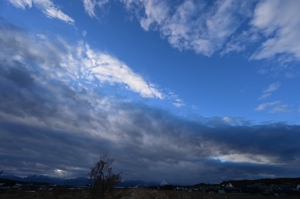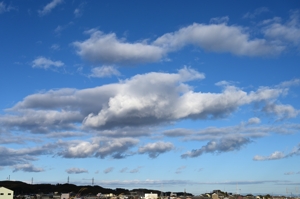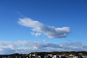 高気圧が覆ってきて晴天。 ただし三重県北部は等圧線の 間隔の狭い部分で風は強め。 同じ場所で積雲の生成・消滅が 始まり、いっきに長大なつるし雲へ。 衛星画像では、山脈に平行な 波状雲のひとつです。 |