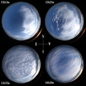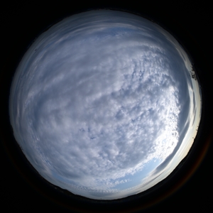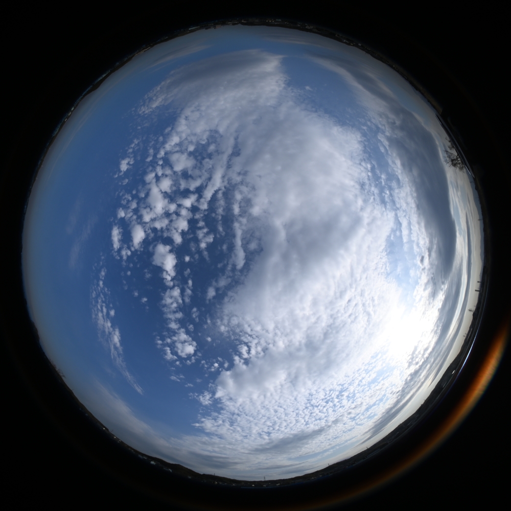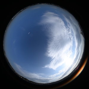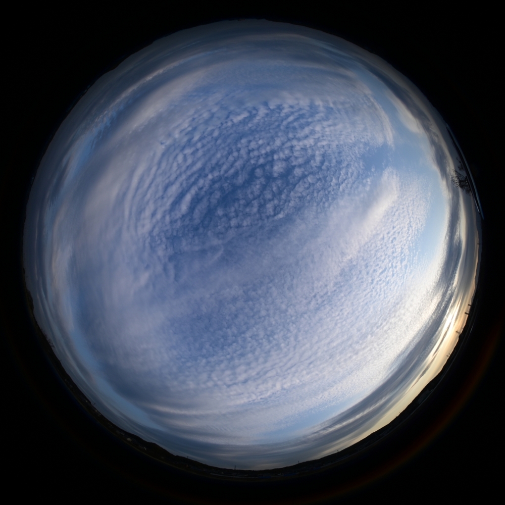 | 16:14 西 24mm | 高積雲と巻積雲の混ざる空 16:39 上が北 全周魚眼 |