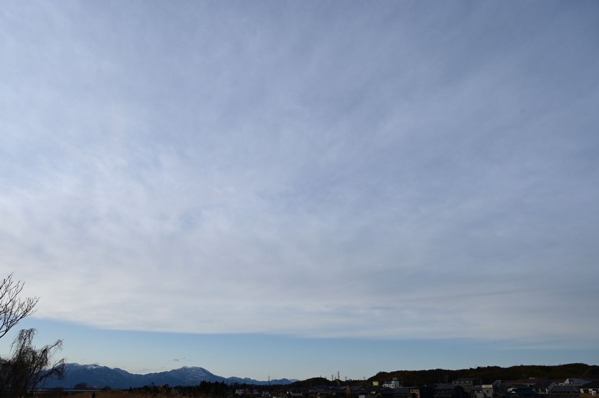 | 南岸を種腰離れ気味に通過する低気圧に伴う 巻層雲が朝から夕方まで空を覆い、22°ハロ、 タンジェントアーク、幻日、環天頂アークなど、 主な大気光学現象が見られました。 日没前にはこの巻層雲の西縁が通過し、長時間 の巻層雲のあとに快晴となる、少し珍しい 天気変化のパターンになりました。 |