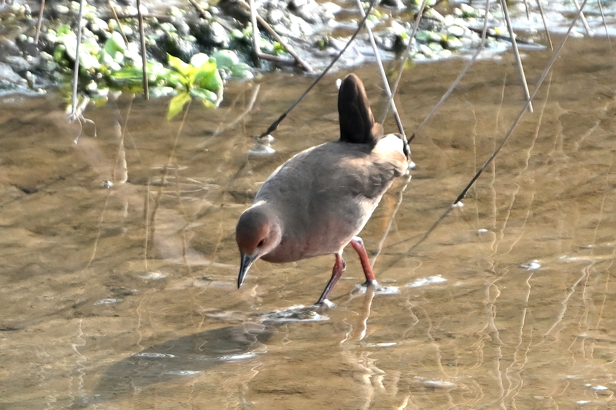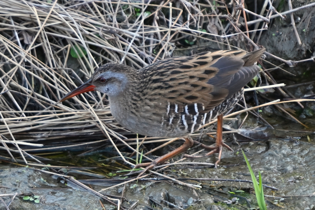 暖かい、夕方の員弁川。 今日もヒクイナが長時間歩きながら餌を啄む姿。 少し離れた所で今度は、クイナが歩き、開けた場所を 猛スピードで駆け抜けたところをシャッター速度 1/250秒で、動感のある走り姿を撮影。 そのあと草のトンネルに入って、先日飛び越えた 浅瀬(水たまり)に向かったので、そこを構図に構えて シャッター速度を変えようとしたところ・・・・・・ いつもはしばらくしてから草のトンネルからあらわれる のに、今日はあっという間にあらわれて、なんと浅瀬を 飛翔して越えていきました。あわててシャッターを切り ましたが、シャッター速度は1/250秒のまま・・・・・。 多々こころ残りがあるものの、ついにクイナの飛翔 (後ろ姿)を、一応、撮影することができました。 今シーズン中に飛翔写真のリベンジをしたいところ。 カワセミは今日もメスが登場。 オスがどこへ行ってしまったのか、気になります。 |