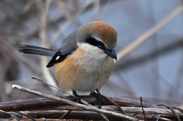 モズ(オス)を撮影。少し前まではメスがなわばりを