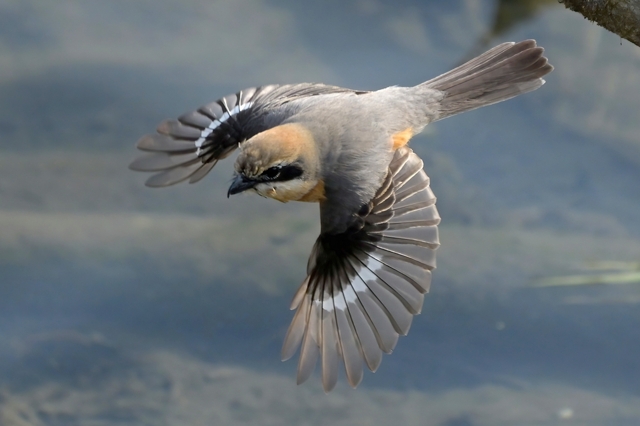 夕方の員弁川。 カワセミ(メス)は、16時・16時30分・17時と、正確に 30分おきに登場。周回コースをめぐるような動き。 モズ(オス)が、カワセミの定番ポイントの倒木に来て 飛ぶたちシーンを撮影。広げた翼が美しい。 今日もヒクイナが歩き回り、対岸をカワアイサが泳ぐ。 安心するような風景です。 中州の立ち木には幾度もツグミがやって来ました。 |