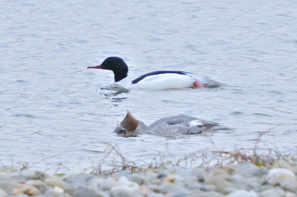 | カワセミ(メス) | カワアイサ 奥がオス、手前がメス |