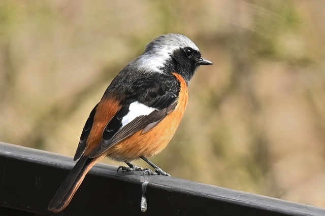 「住宅地の庭に ジョウビタキ(オス)」