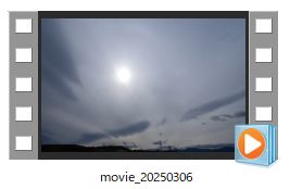 | タイムラプスムービー60倍速 「山脈沿い つるし雲 と ハロ」 ピクチャーインピクチャー非対応のブラウザーでは以下のサムネイルをクリック |