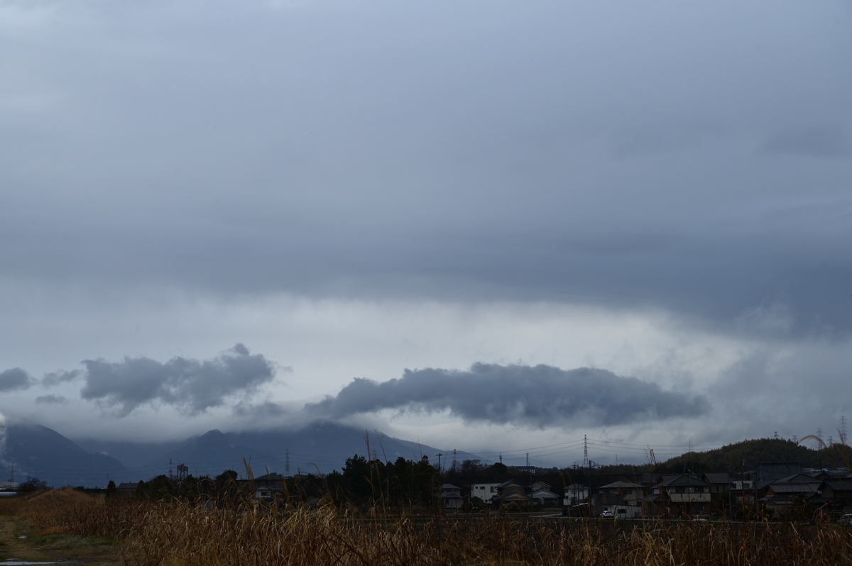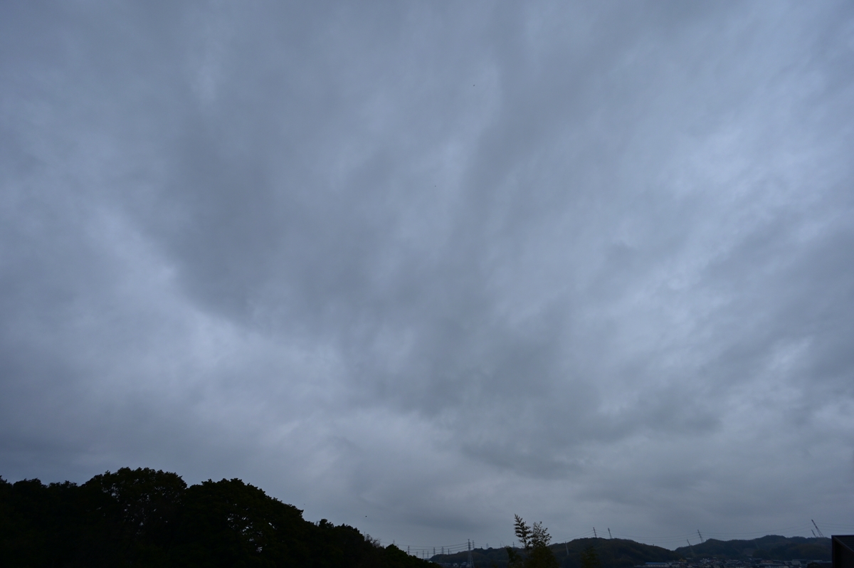 南岸低気圧の通過に伴って昨日の午後に降り始めた雨は 朝にいったんやみましたが、昼過ぎからふたたび降り始め ました。写真は、このときの乱層雲ですが、天気図では 寒冷前線として解析されており、大気の状態の不安定さを 感じさせるような、不穏な雰囲気の雨雲でした。 明日は西高東低の気圧配置となり、北西の風が 強まる見込みです。 |