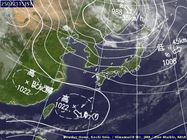 (高知大学気象情報頁赤外画像と気象庁速報天気図を合成)
