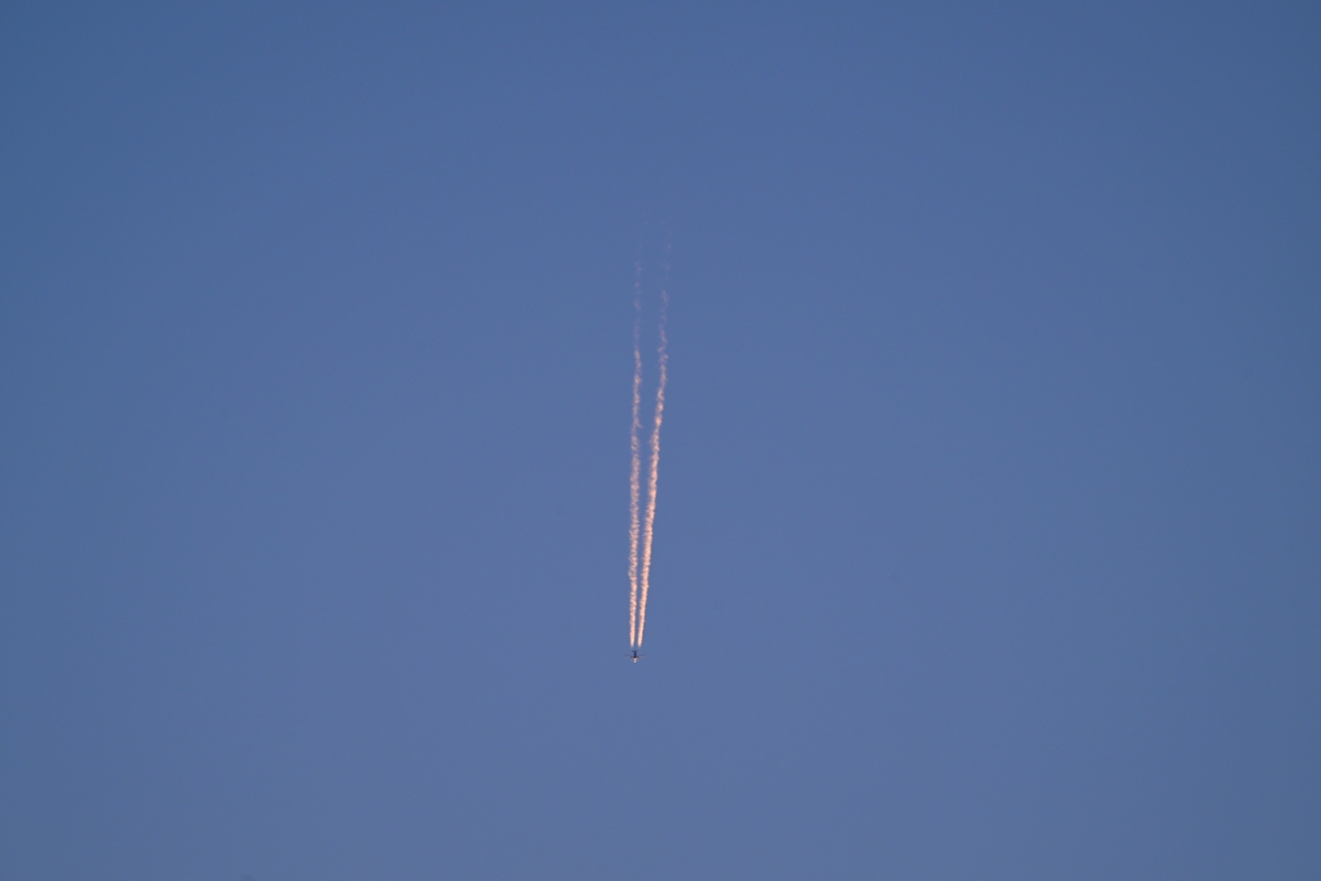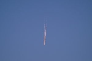 | 夕焼けで赤い飛行機雲 18:10 560mm |