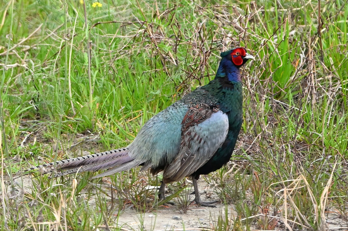 | 夕方、曇り空の員弁川にて。 <撮影> カンムリカイツブリ・ホオジロ・モズ・カルガモ・カワウ・キジ・コチドリ(?) <観察のみ> カワセミ・カイツブリ・ムクドリ 連日、キジ(オス)が姿を見せて雄たけび・今日は全身カットが撮れました。 カワセミは三度登場するも、撮影できるところに留まらず。繁殖期のせいか 活動パターンが変化。まだ見られているのが幸運かも。 |