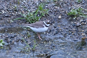| コチドリ(?) 黄色のアイリングが太め。 日没後に群れで鳴きながら 浅瀬にやってきた。 |