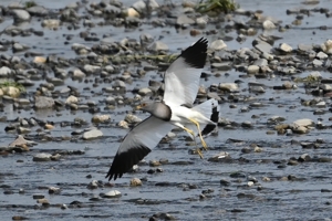 「田んぼから川へ移動する ケリ」