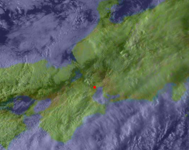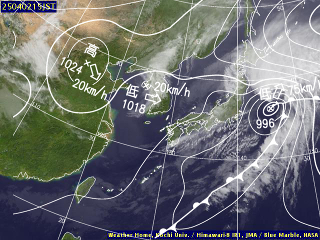 | 地上(高知大学気象情報頁赤外画像と気象庁速報天気図を合成) | |||