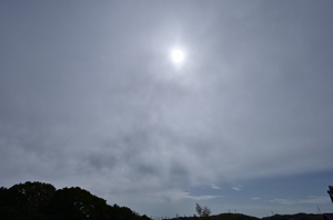 東に去った低気圧に向かうように下層では西からの気流により 午後、層積雲が継続しました。鈴鹿山脈ンお山麓に生じている 低い層積雲とあわせて二重雲になっていることが多くありました。 日没のころ、東へ去ってゆく層積雲の一部に波状雲が生じ、 その畝の各部分に顕著な乳房雲が発生しました。乳房雲の 成因は一概にいえないようですが、今日のものは波状雲に 生じていることから、降水粒子の大きくなった部分が重力で 垂れさがっている現象のように思います。 |