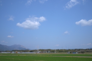 | 高気圧に覆われてきて快晴。遠景や雲がかすんでいて 黄砂かな?と思わされましたが、黄砂情報をみると 黄砂は来ていないようです。春の気温上昇で下層の 水蒸気量が増えていることによる春霞のようです。 雲も少なく、山麓にぽつぽつと扁平雲が生まれて やや強めの風に流されていました。 |