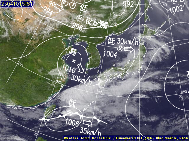 (高知大学気象情報頁赤外画像と気象庁速報天気図を合成)