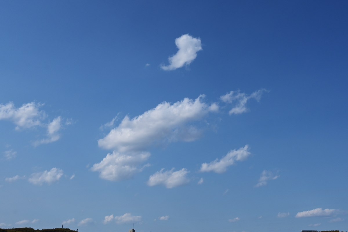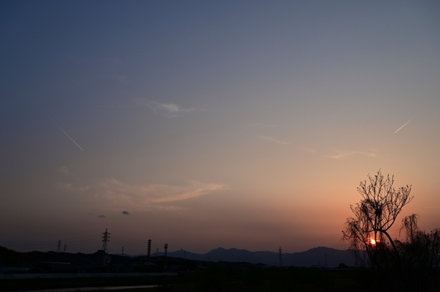 数日間、その勢力を誇った寒冷渦がようやく去って、 名残の積雲が流れ来る、快晴の春らしい一日となりました。 次の気圧の谷の影響は夕方に見え始め、短い飛行機雲や 巻層雲がかかる日没となりました。 |