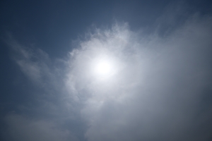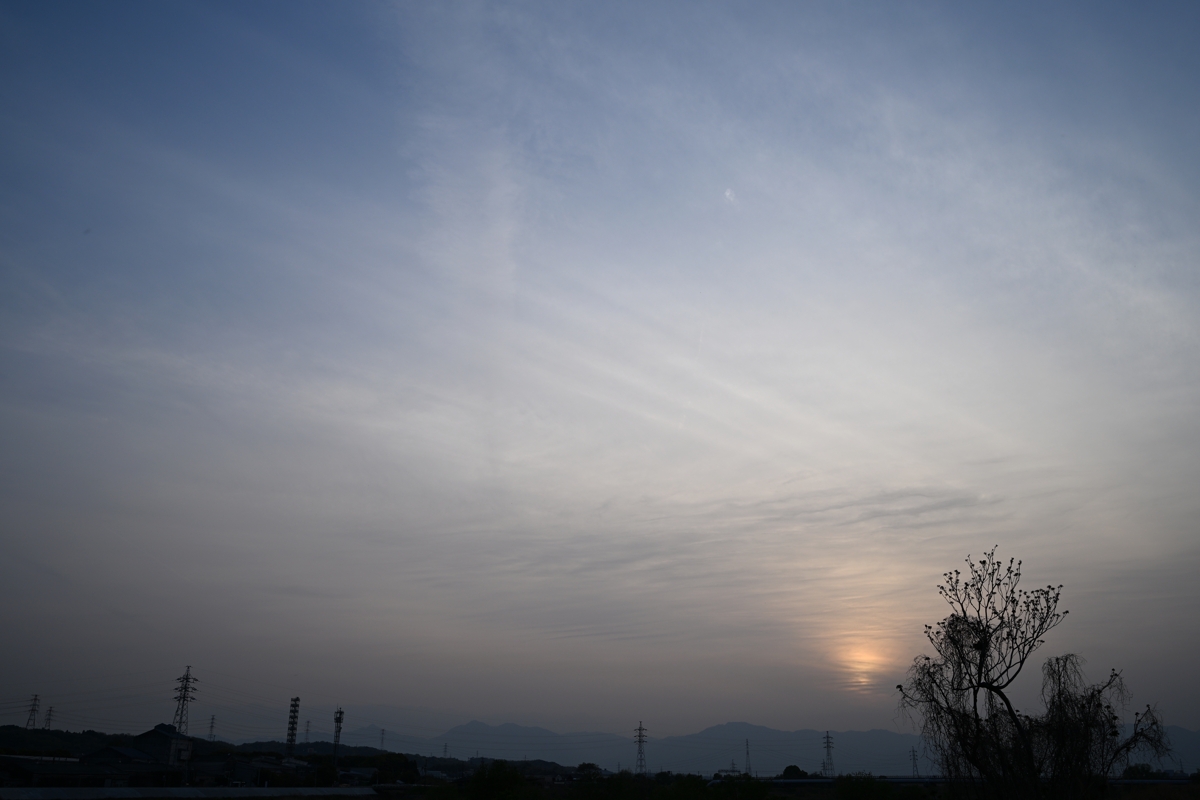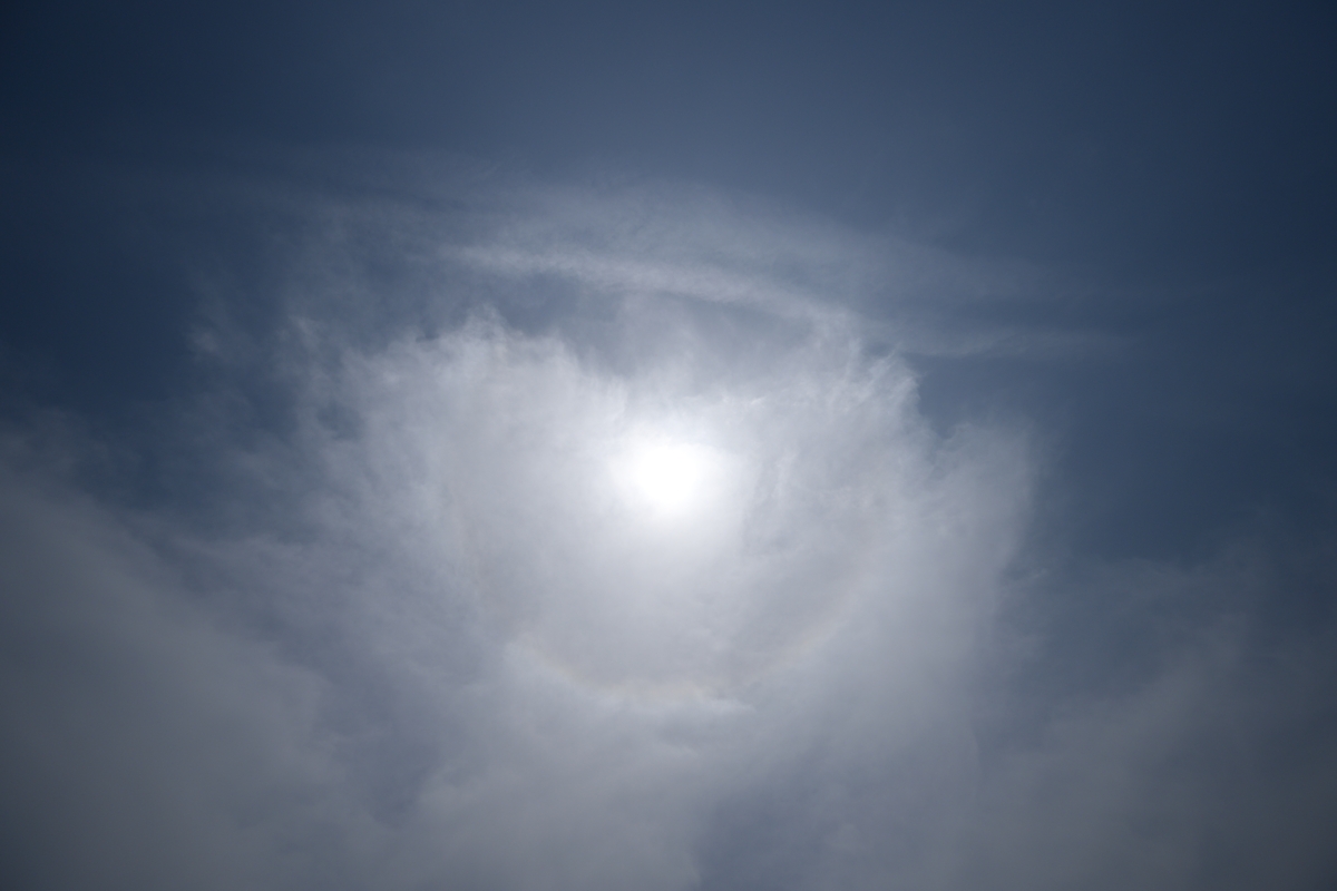 よく晴れて気温が上昇、27.8℃に達する夏日になりました。 昼頃に流れてきた巻層雲にはときどき22°ハロ。 その後は快晴の青空にときどきハロのない淡い巻層雲。 夕方には、太陽の両側に幻日も見られました。 明日も気圧の谷に伴う上層雲・中層雲が多くなりそう。 |