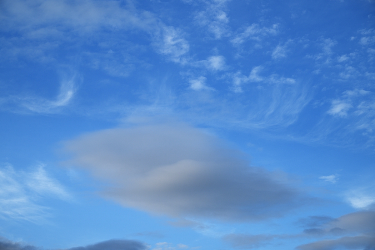 高積雲の尾流雲と層積雲のレンズ雲 17:44 北 70mm |