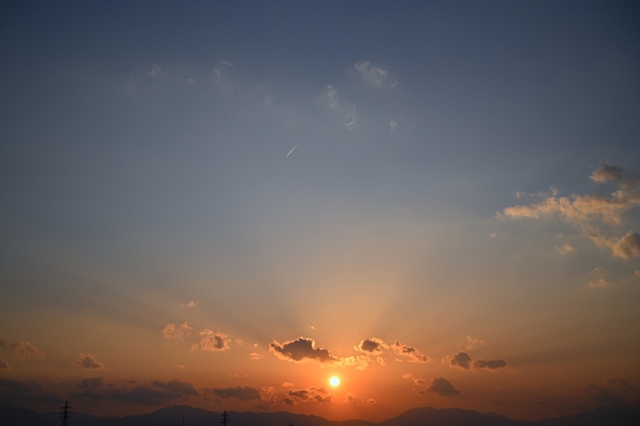 雨をもたらした南岸低気圧は急発達して三陸沖へ。 宮城県では暴風警報が発表されました。 三重県北部も冷たい北西風が吹き、ダウンジャケットと 手袋を着用、4月末とは思えない寒さになりました。 空は、積雲が乱れた形状で流れて来て、冬のよう。 積雲がつくる日没の光芒の美しさが印象的でした。 |