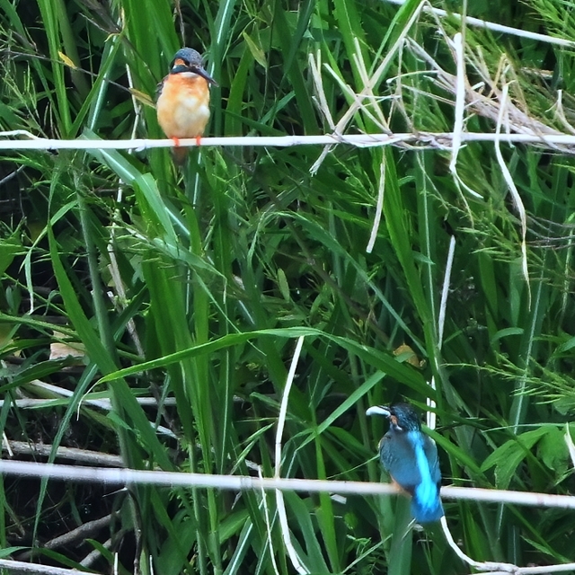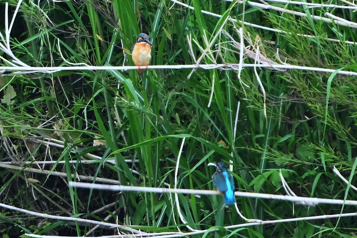 カワセミの餌渡し 対岸、150〜200mの距離 f11 1/20秒 ISO800 |