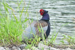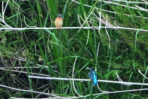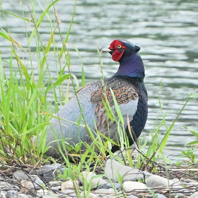 | 「対岸で カワセミの餌わたし/中州のキジ(オス)」(桑名市) | |||