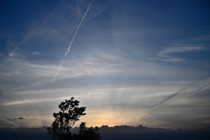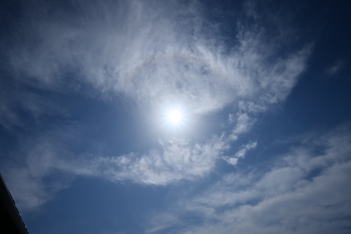 | 高気圧に広くおおわれて終日、快晴。巻層雲はときどきやってきて、 朝には22°ハロ、夕方には幻日と淡いタンジェントアーク。 夜には高層雲・層積雲で完全な曇り空になり、天気は下り坂です。 |