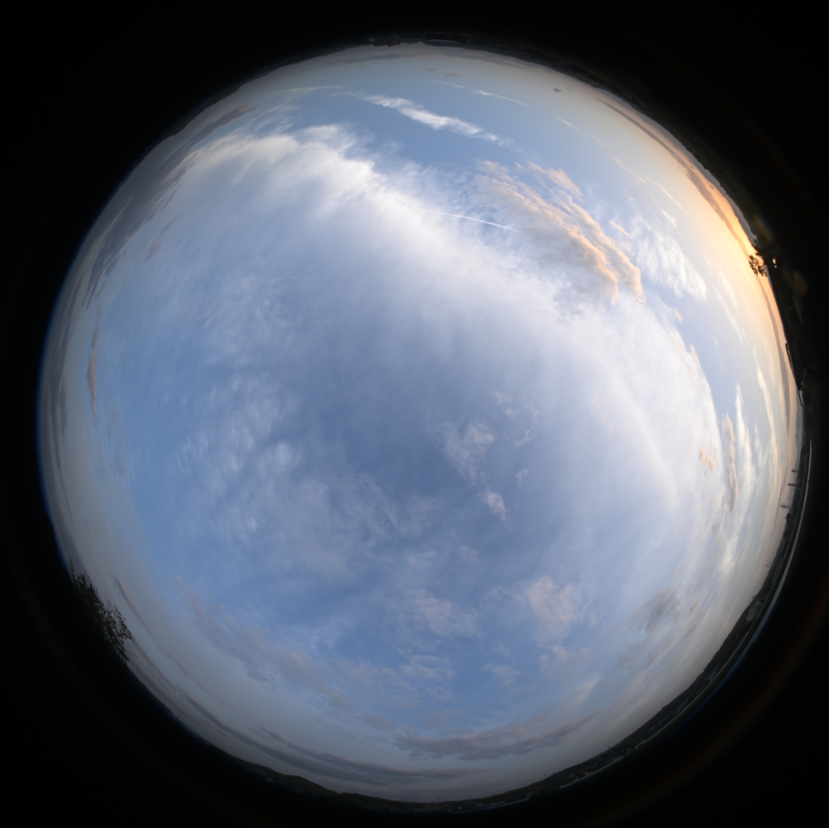 | 18:34 上が北 全周魚眼 下層だけでなく、中上層にも 地形性の雲が発生。 |
