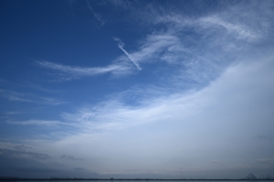 | 降雨域の広い日本海低気圧が通過。そのあとも小雨のまじる 曇り空が継続し、急速に晴れ上がったのは17時30分頃のこと。 鈴鹿山脈に沿って、下層には層積雲のレンズ雲(つるし雲)、 中層には大きな地形性の高積雲とそこから上層の巻雲や 巻積雲につながって行く様子が見られました。 通過した低気圧は前線の閉塞が進んでおり、地上付近の 暖気はすっかり上昇して大気の状態は安定化している状況 ですが、上空には複雑で美しい雲がたくさん生じていました。 |