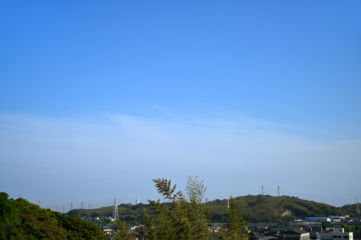 前夜、夜半前に月の22°ハロ。 沖縄の南から日本の東にかけて長い停滞前線。 その北側には中上層雲域があって、その北縁が 終日、南の空に見え続けていました。 |