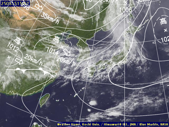 | 地上(高知大学気象情報頁赤外画像と気象庁速報天気図を合成) | |||