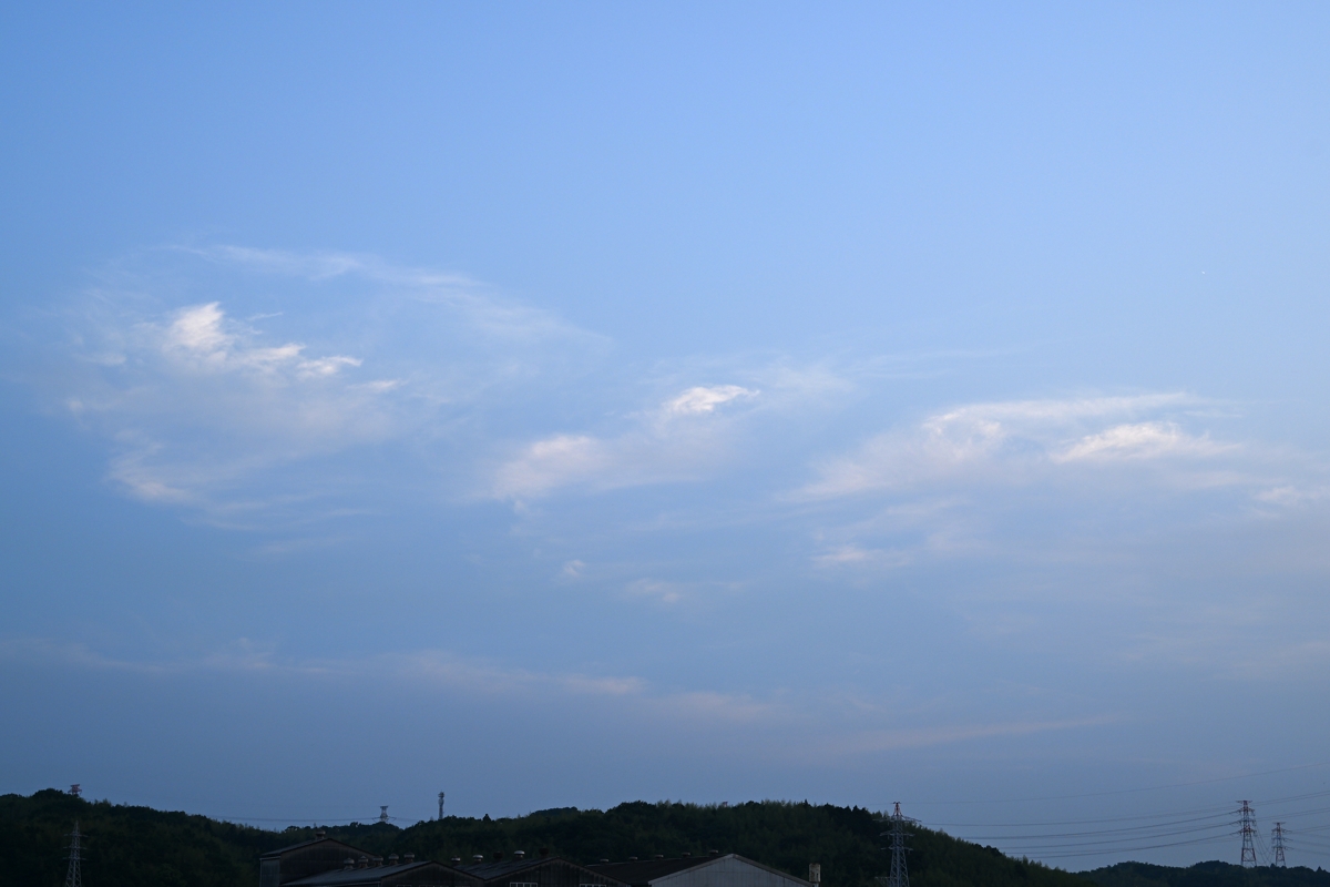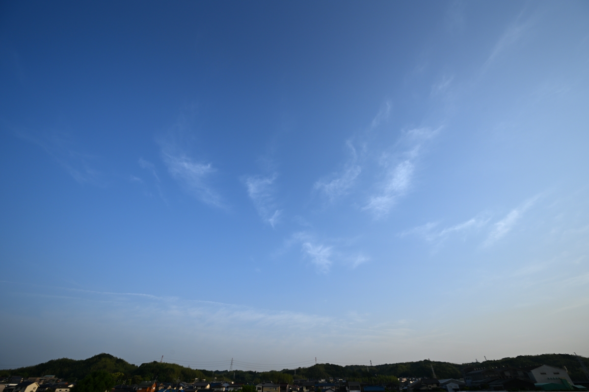 | 快晴の一日。気温が上昇し各地で真夏日となるも 桑名は最高気温28.6℃(16時04分)どまりでした。 南岸には前線に伴う雲域があって、夕方になると これが近づいてきて、巻雲が現れ始めました。 日没後にはこの雲域が原因と思われる夕焼けの 光の明暗(薄明光線)が美しく見られました。 明日は前線(梅雨前線)の接近で下り坂の天気。 |