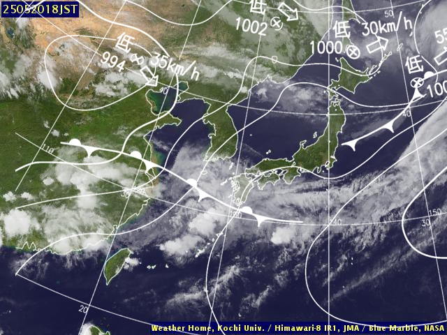 | 地上(高知大学気象情報頁赤外画像と気象庁速報天気図を合成) | |||