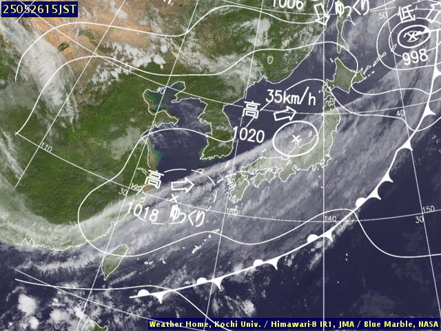 | 地上(高知大学気象情報頁赤外画像と気象庁速報天気図を合成) | |||