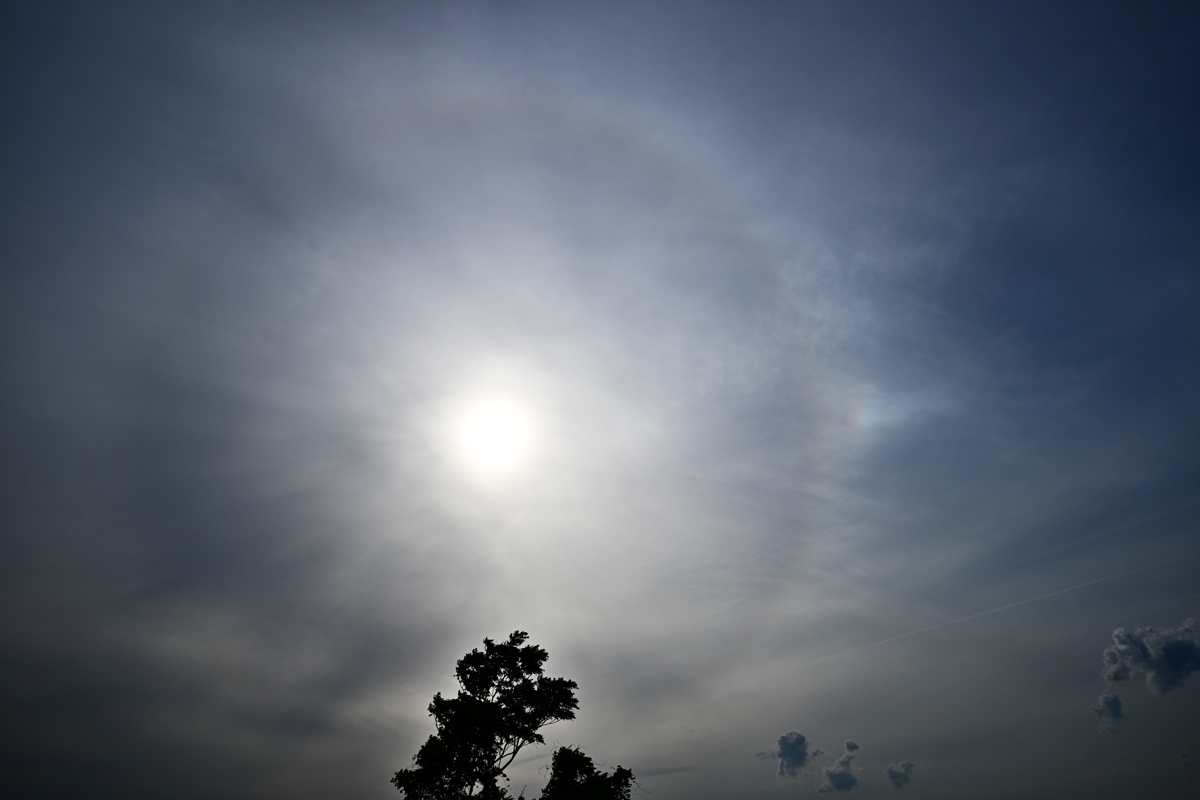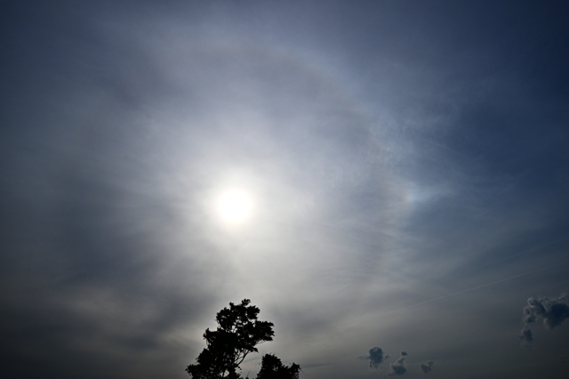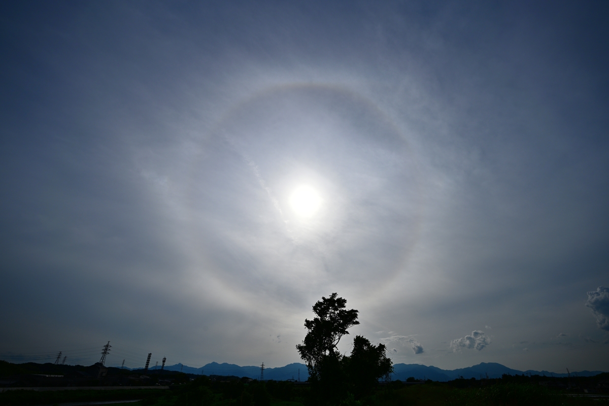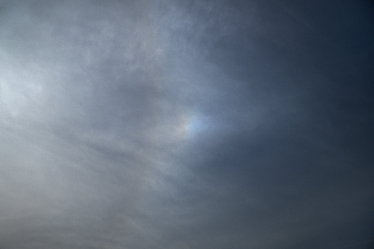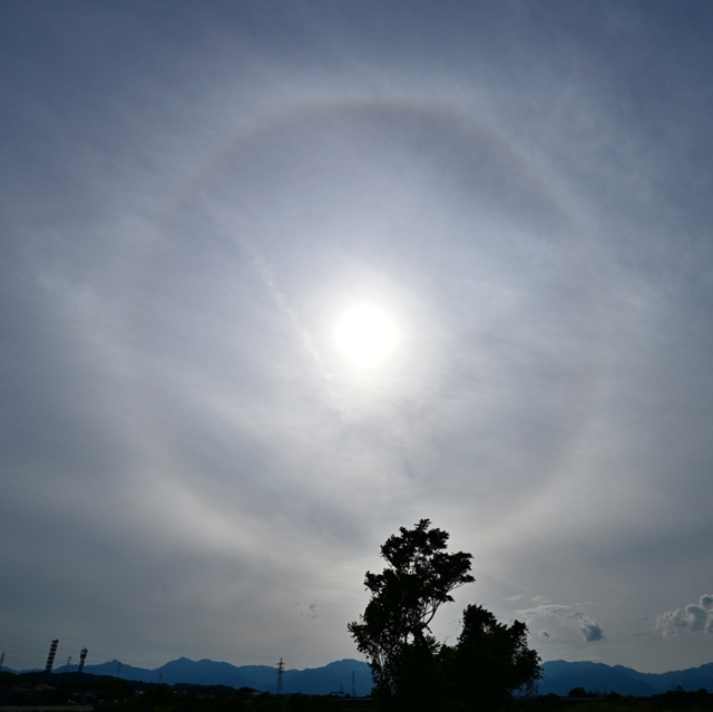 停滞前線は大きく南に離れた一方で、日本海に中心をもつ 高気圧の後面の上層雲が近づいてきました。 昼過ぎに淡い環水平アークが見られたあと、夕方には 22°ハロが明るくなり、タンジェントアークや幻日も見られました。 |