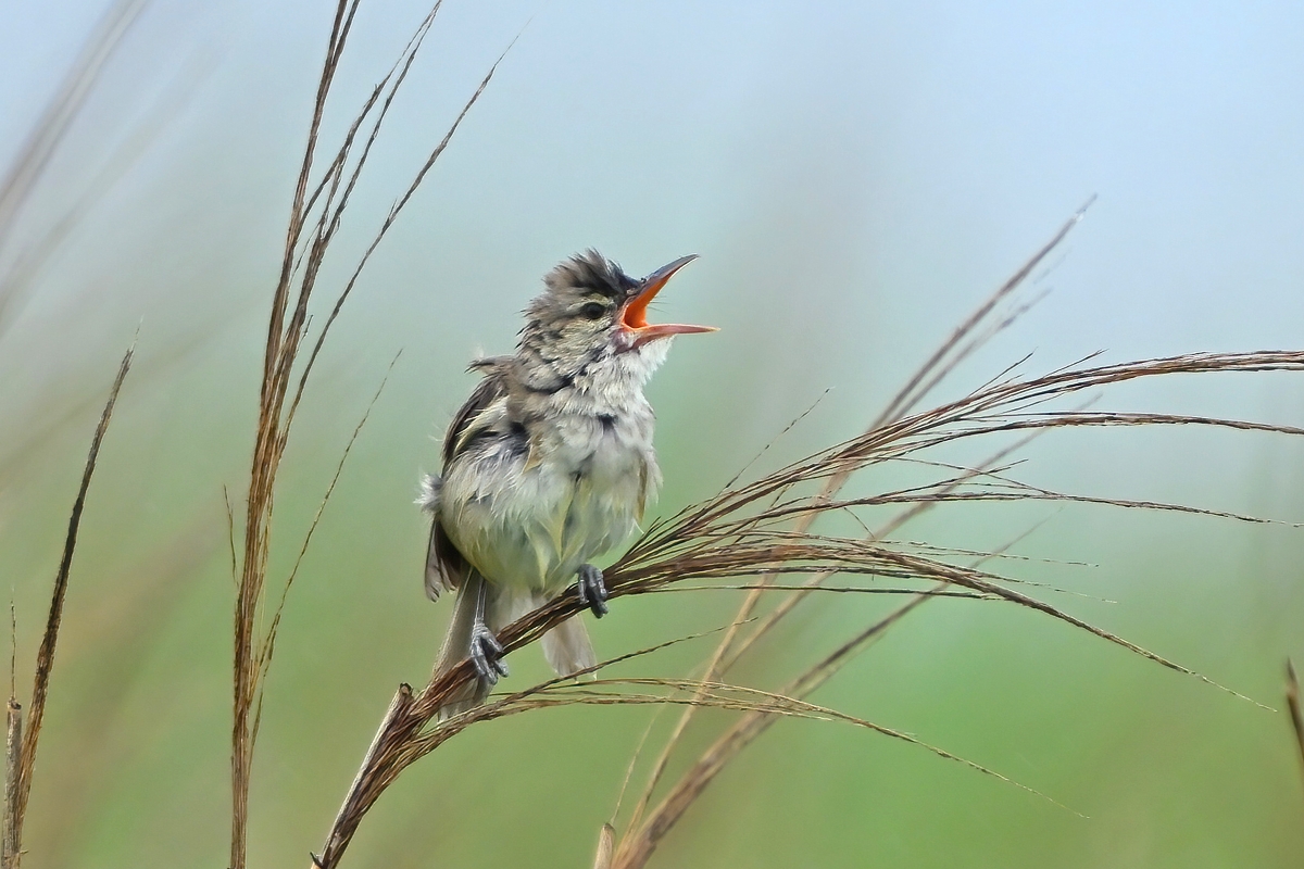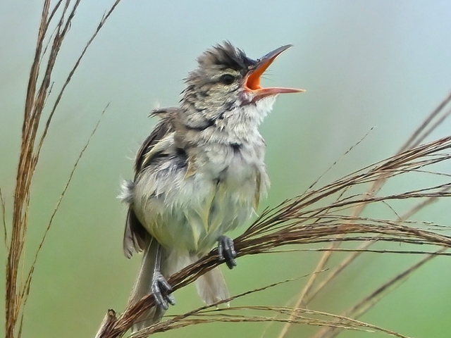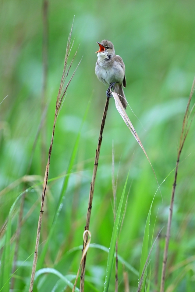 雨が上がり始めてあらわれた、ずぶ濡れのオオヨシキリたち。