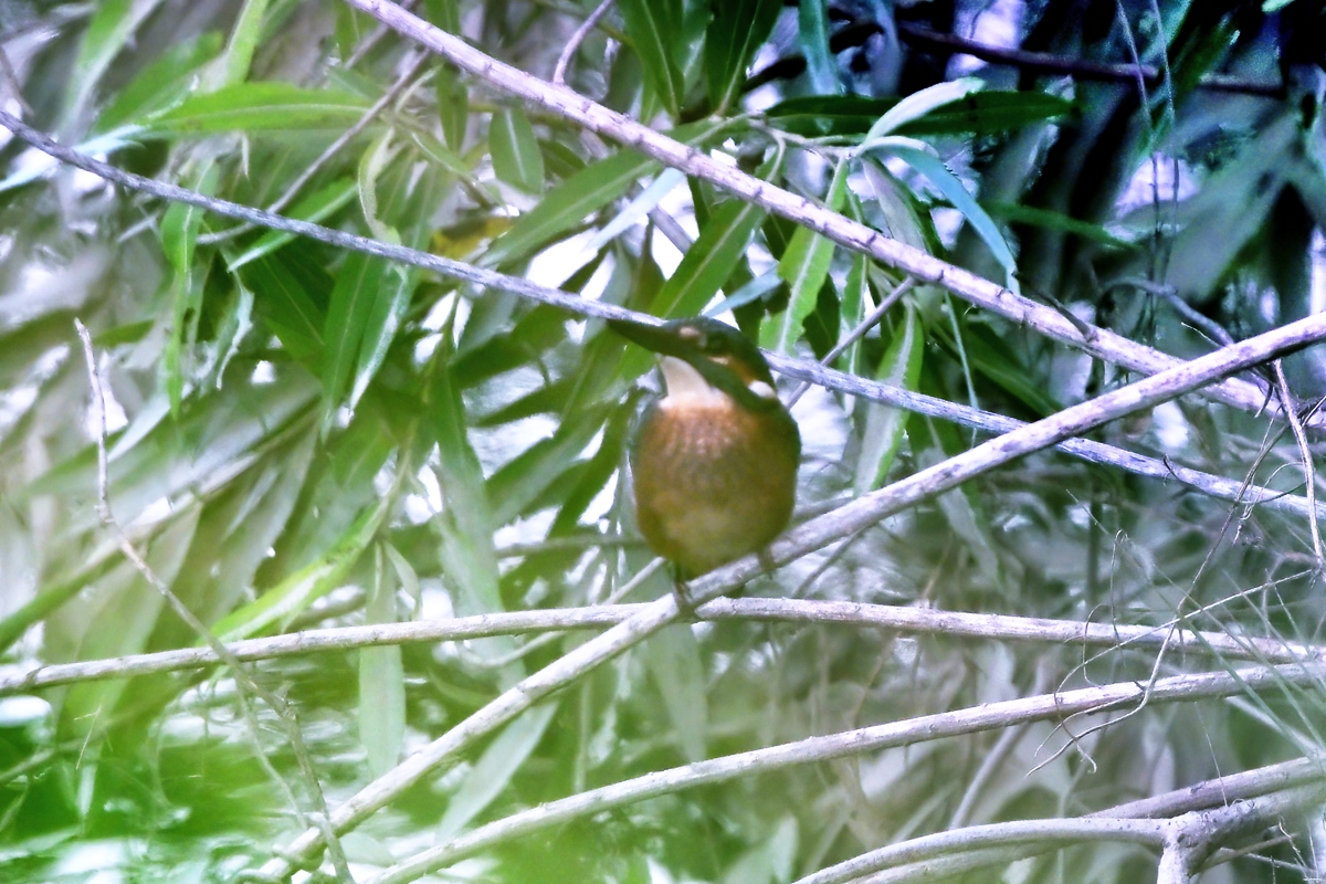 | カワセミ 桑名市 員弁川 一瞬留まるも前景が草にカブリ。 レタッチしてみたが参考メモ程度の掲載。 もしかしたら幼鳥?かも。 |