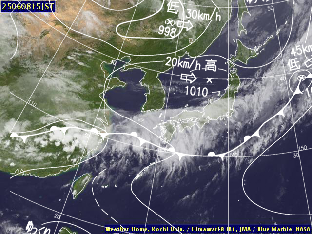 | 地上(高知大学気象情報頁赤外画像と気象庁速報天気図を合成) | |||