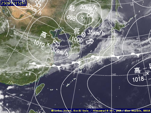 (高知大学気象情報頁赤外画像と気象庁速報天気図を合成)