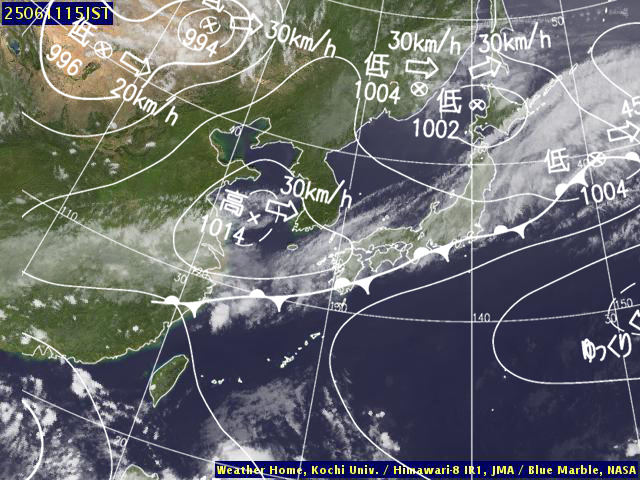 (高知大学気象情報頁赤外画像と気象庁速報天気図を合成)